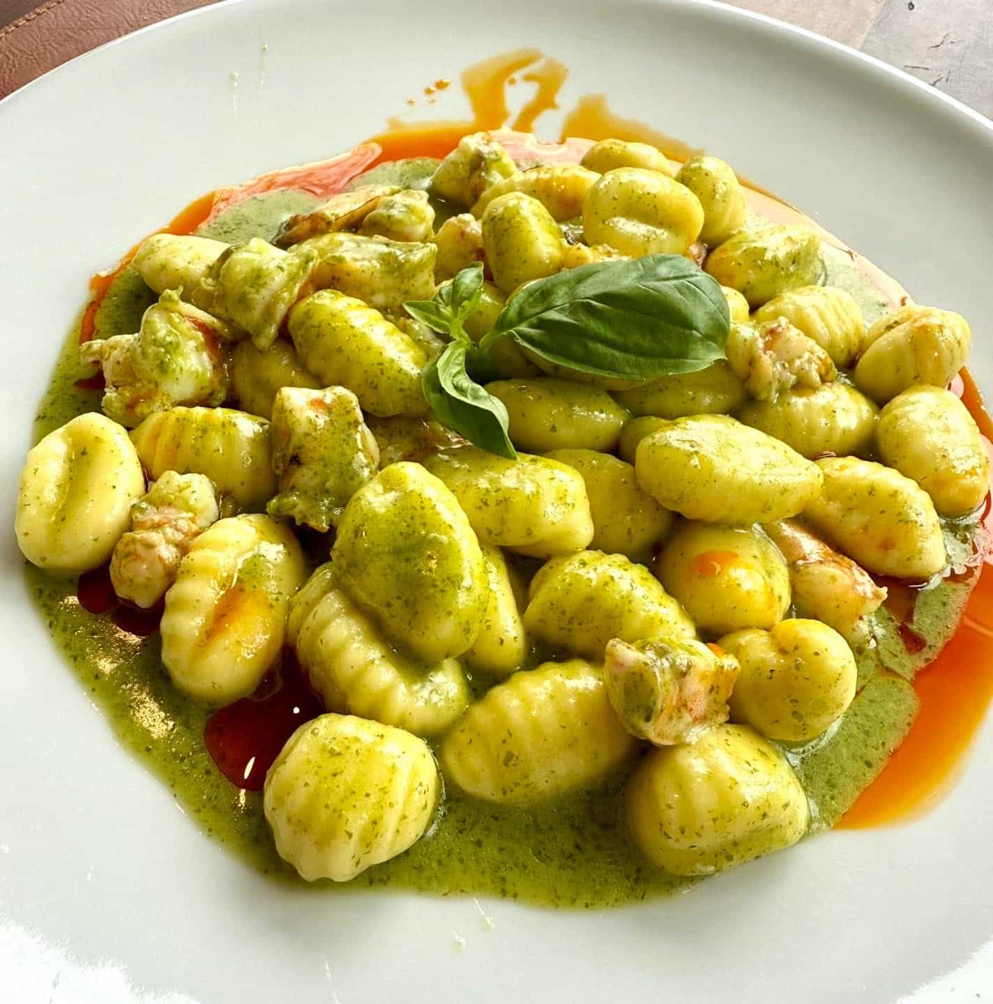 Домашни ньоки от картофи с песто Дженовезе и тигрови скариди